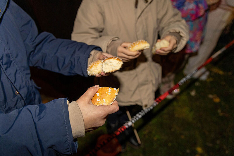 Zum Abschluss durften sich alle Kinder über köstliche Martinshörnchen freuen, während der Elternbeirat selbstgebackene Martinsgänschen anbot.